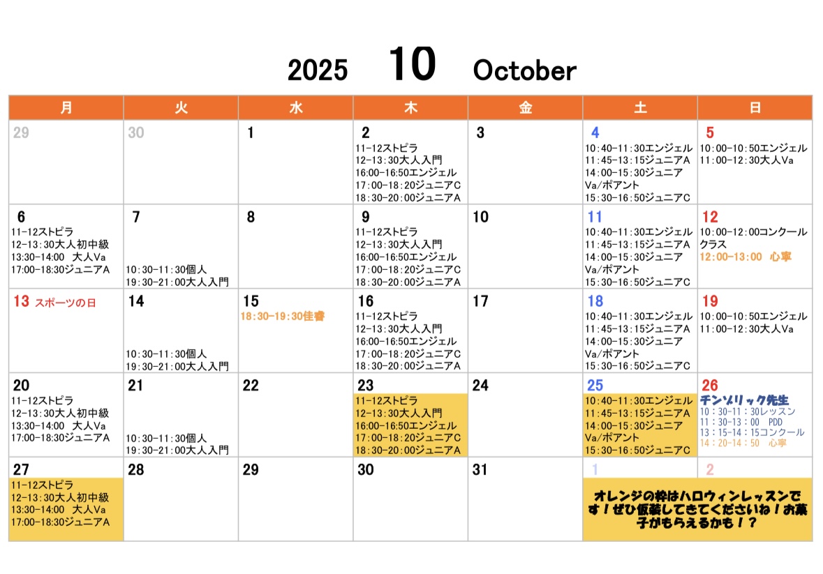 10月のスケジュール